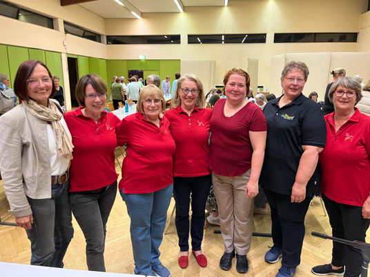 vlnr: Isabell Tammer 1. Beisitzerin, Birgit Wagner-Glaub Geschäfsführerin, Doris Hartmann-Geck stellv. Vorsitzende, Angelika Schulz 1. Vorsitzende, Svenja Nink 3. Beisitzerin, Manuela Vorstandslechner 2. Beisitzerin und Jutta Heck Schriftführerin.