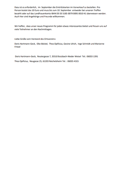Nähere Info und Anmeldung bei Thea Opficius, Telefon 06035 / 4315