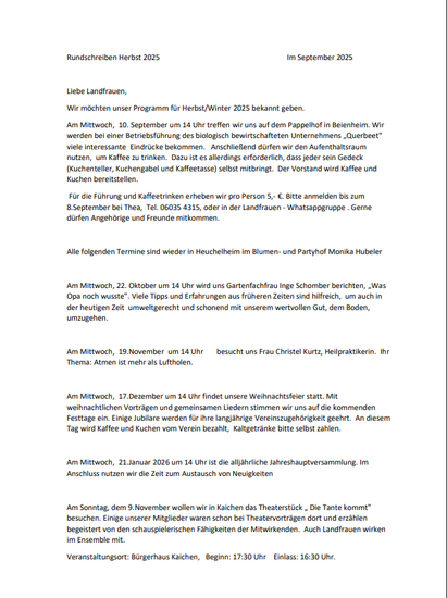 Bitte denken Sie daran, den Jahresbeitrag in Höhe von 25,- € auf das Landfrauenkonto bei der