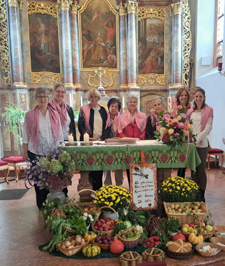 Mit einer schön geschmückten Erntekrone vor der Kirche brachten sie bereits die Bewohner und Gäste des Ortes in die herbstliche Stimmung. In der Kirche gestalteten sie liebevoll den Erntedankaltar und würdigten damit die Früchte der Ernte und die Erzeugnisse der regionalen Landwirtschaft.
