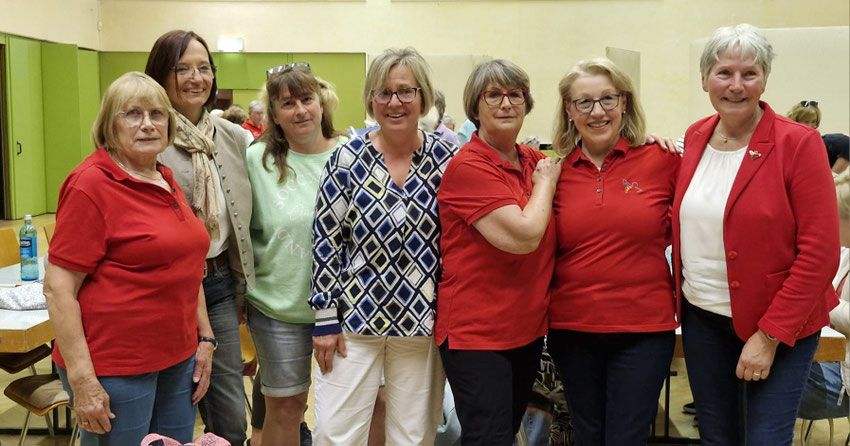 vlnr: Isabell Tammer 1. Beisitzerin, Birgit Wagner-Glaub Geschäfsführerin, Doris Hartmann-Geck stellv. Vorsitzende, Angelika Schulz 1. Vorsitzende, Svenja Nink 3. Beisitzerin, Manuela Vorstandslechner 2. Beisitzerin und Jutta Heck Schriftführerin.